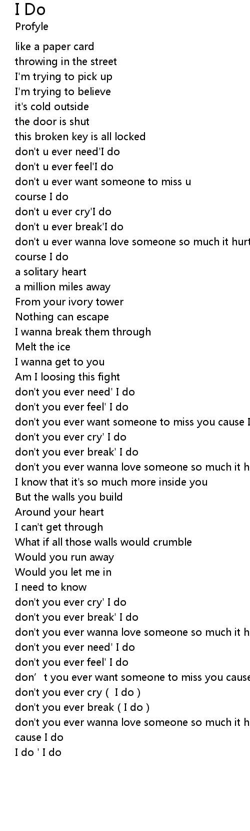 | [01:49.54] | don't you ever want someone to miss you cause I do |