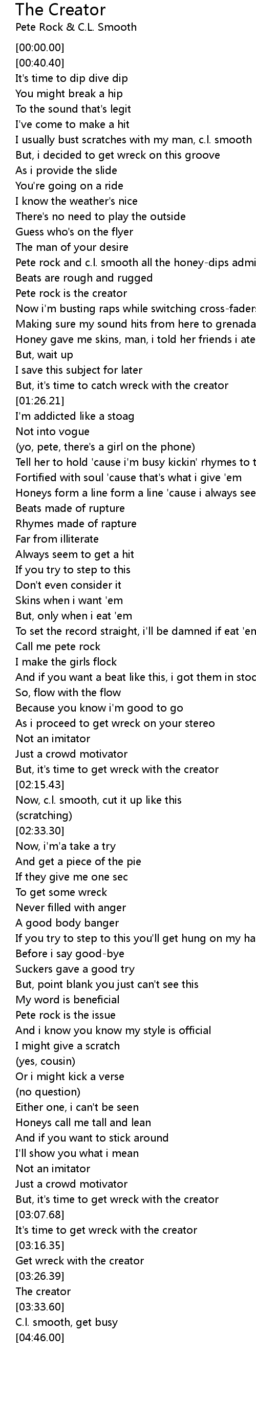 But, it's time to catch wreck with the creator |