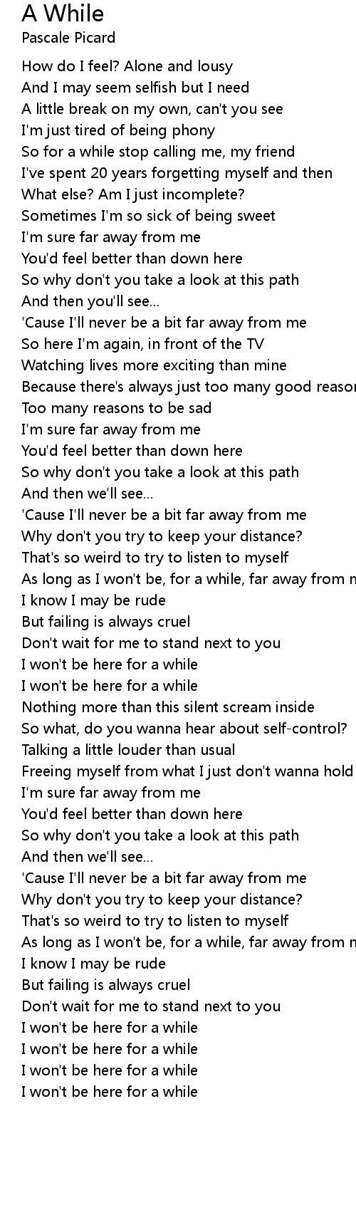 As long as I won't be, for a while, far away from me |