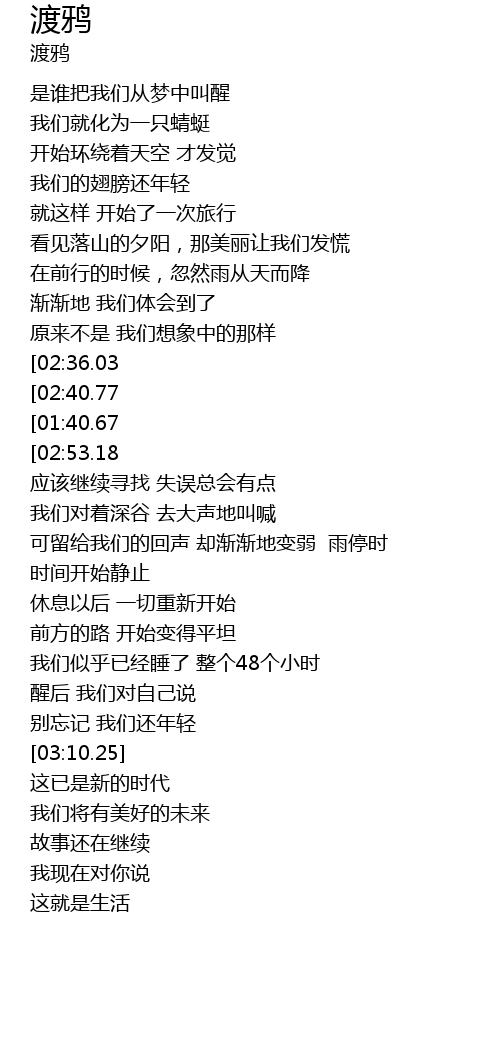 | [01:16.70][02:40.77][02:59.09] | 应该继续寻找 失误总会有的 |