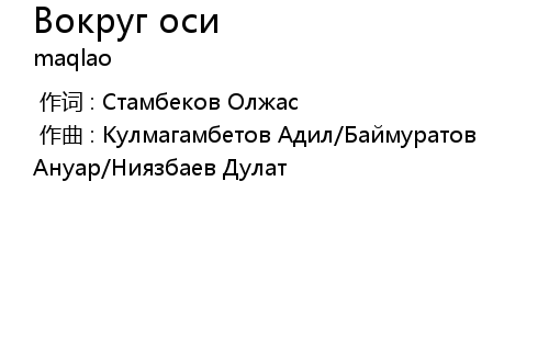 | [00:00.00-1] | 作曲 : Кулмагамбетов Адил/Баймуратов Ануар/Ниязбаев Дулат |
