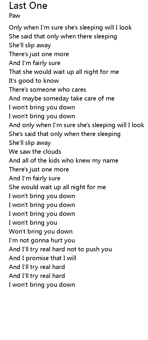I won't bring you down |