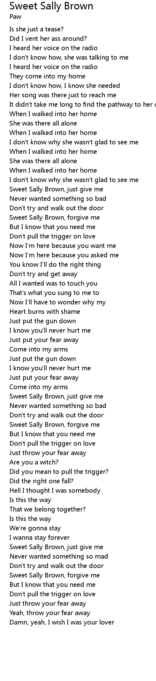 Sweet Sally Brown, just give me |