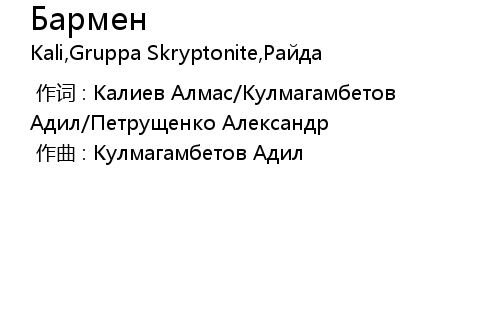 | [00:00.00-1] | 作词 : Калиев Алмас/Кулмагамбетов Адил/Петрущенко Александр |