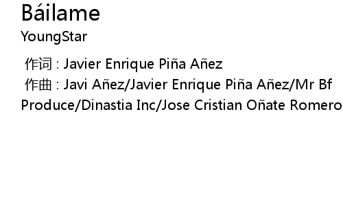 | [00:00.00-1] | zuò qǔ : Javi A ez Javier Enrique Pi a A ez Mr Bf Produce Dinastia Inc Jose Cristian O ate Romero |