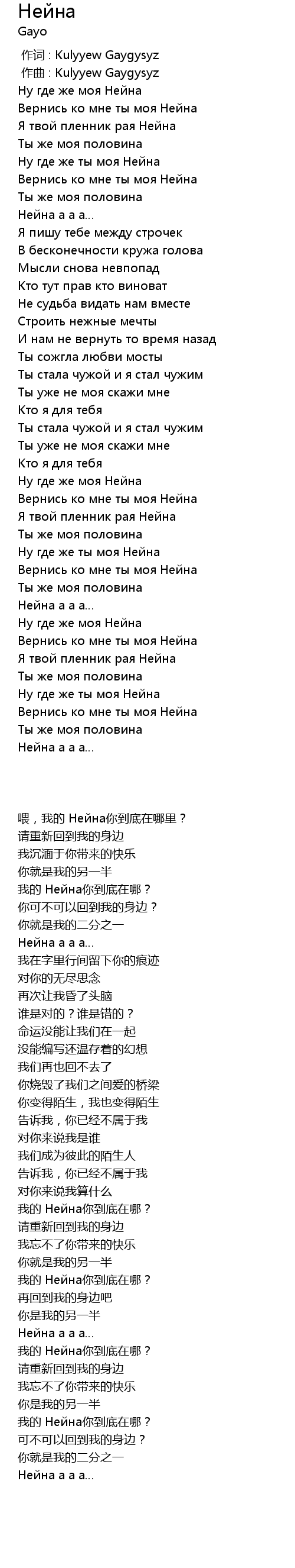 作词 : Kulyyew Gaygysyz |