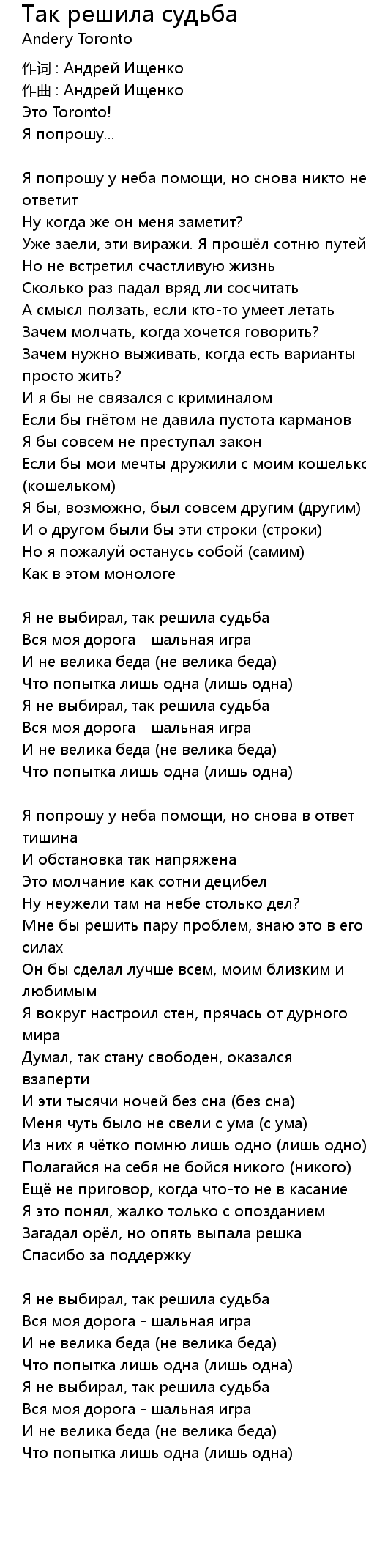 Я не выбирал, так решила судьба |