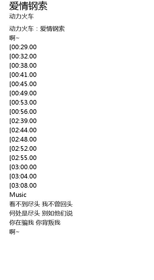 | [00:01.00] | dòng lì huǒ chē: ài qíng gāng suǒ |
