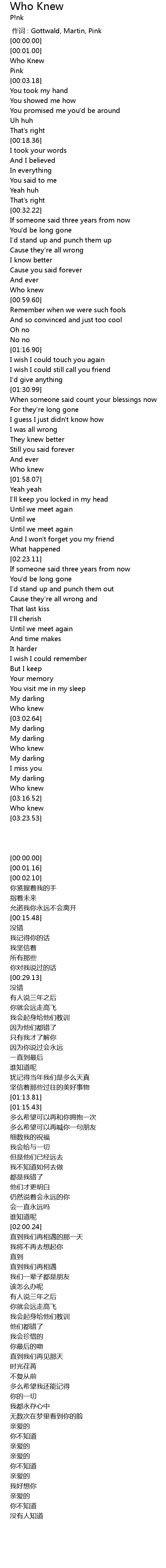 | [00:01.16] | Who Knew |
