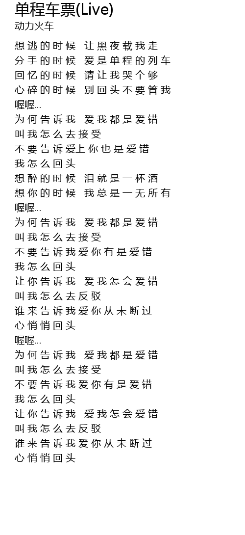 | 分 手 的 时 候 爱 是 单 程 的 列 车 | |