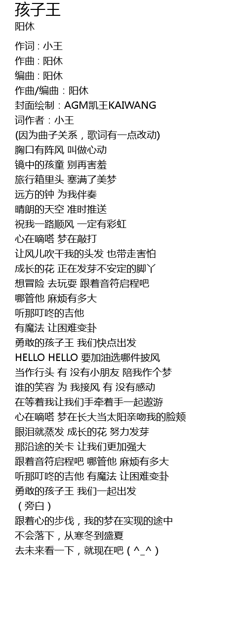 | 勇敢的孩子王 我们快点出发 | |