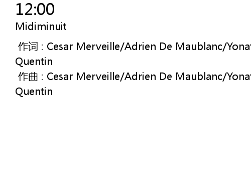 | [00:00.00-1] | zuo qu : Cesar Merveille Adrien De Maublanc Yonatan Levi Julien Quentin |