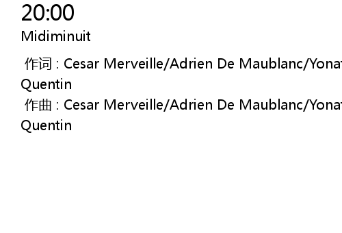 | [00:00.00-1] | zuo qu : Cesar Merveille Adrien De Maublanc Yonatan Levi Julien Quentin |