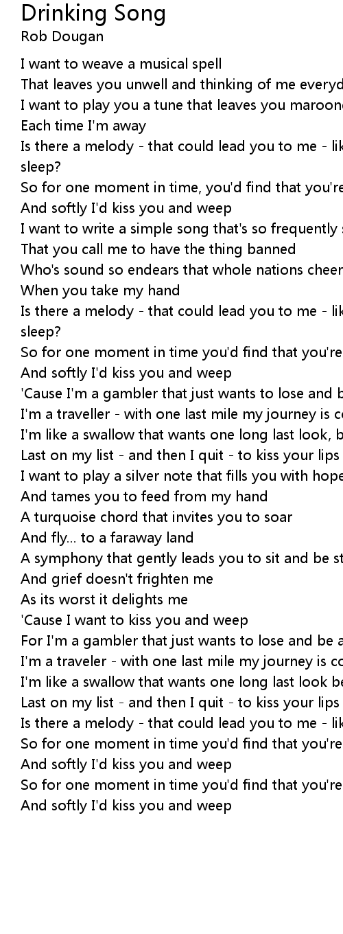 Last on my list - and then I quit - to kiss your lips and weep |