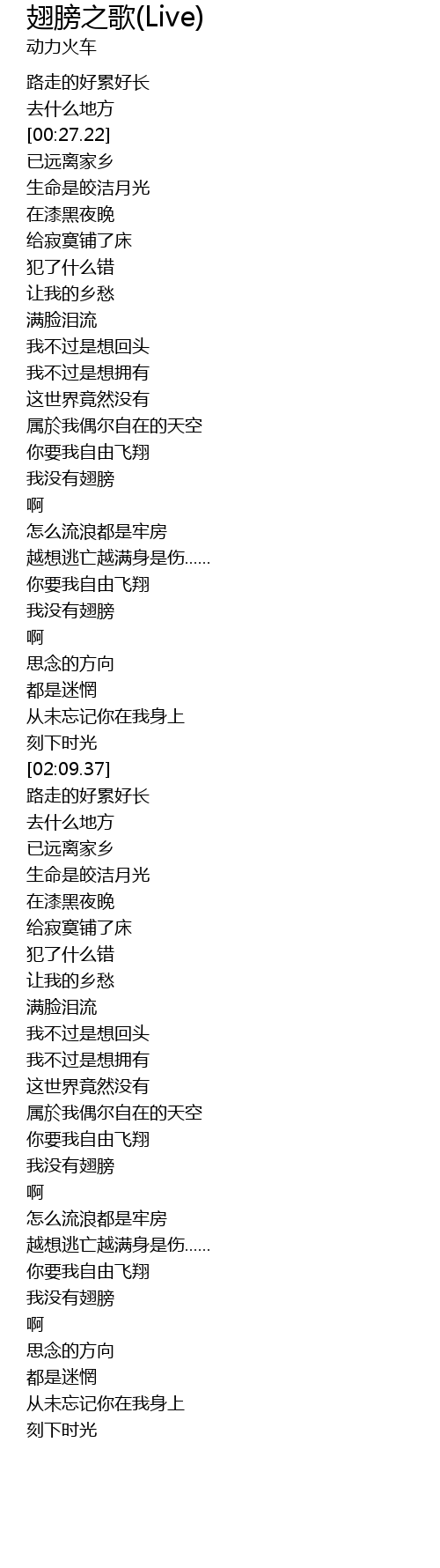 | [01:42.31] | wǒ méi yǒu chì bǎng |