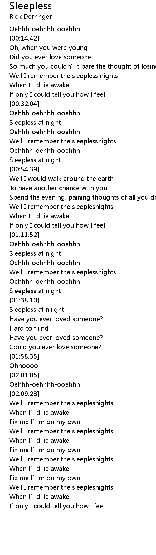 | [00:53.25] | Sleepless at night |