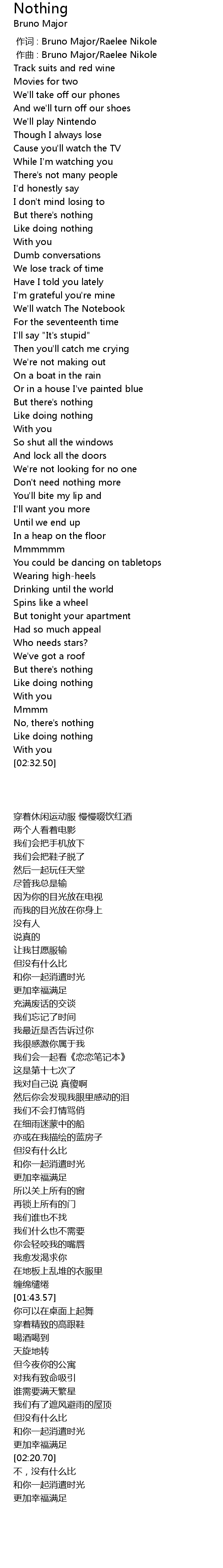 | [00:00.00] | zuò cí : Bruno Major Raelee Nikole |
