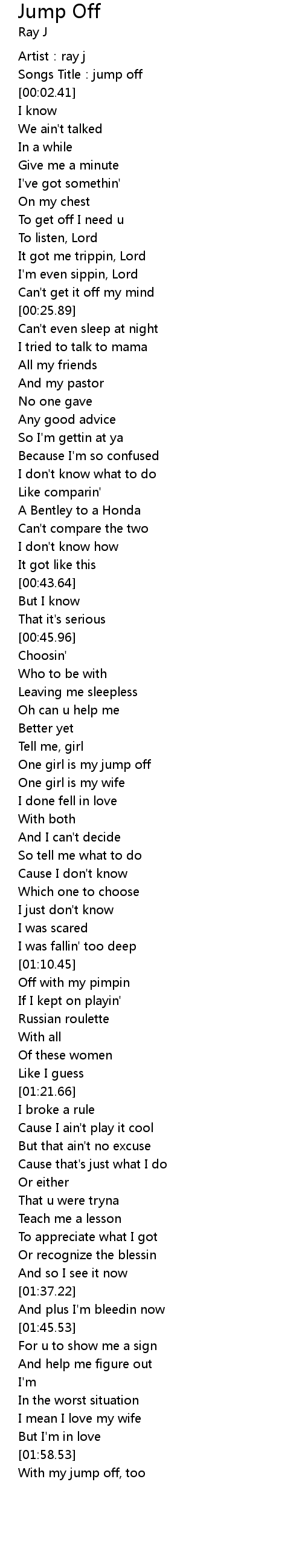 | [00:56.05] | One girl is my jump off |