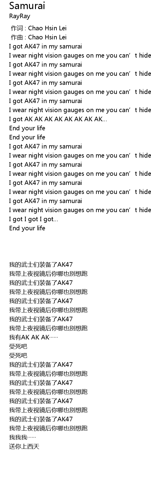 | [00:40.764] | I got AK AK AK AK AK AK AK AK… |