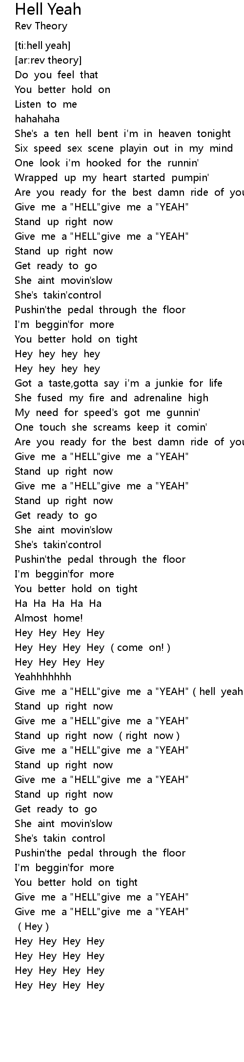 | [03:16.174] | Give me a " HELL" give me a " YEAH" |