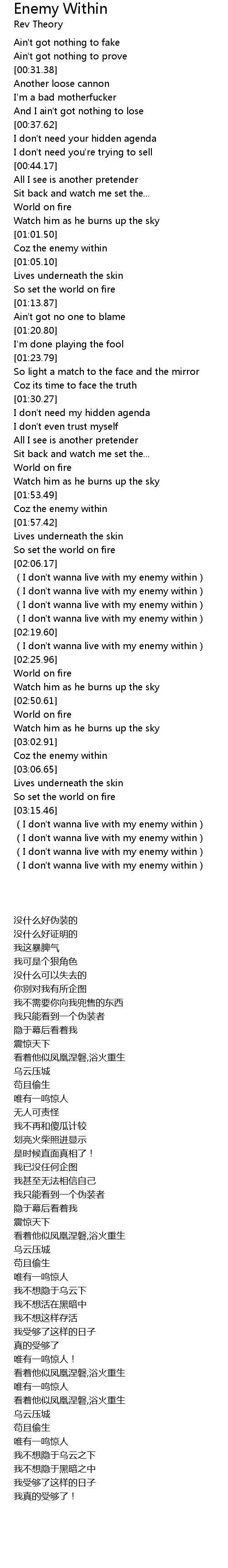 | [03:32.31] | (I don't wanna live with my enemy within) |