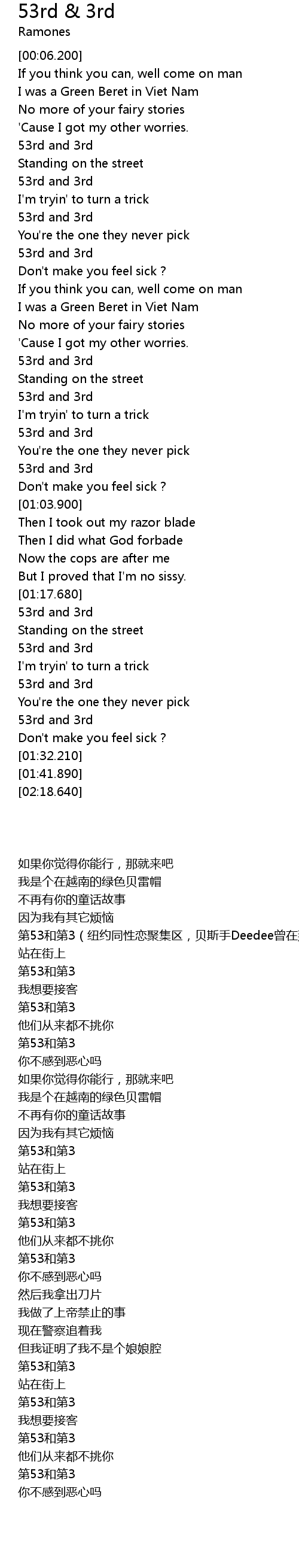 | [01:30.190] | Don't make you feel sick ? |