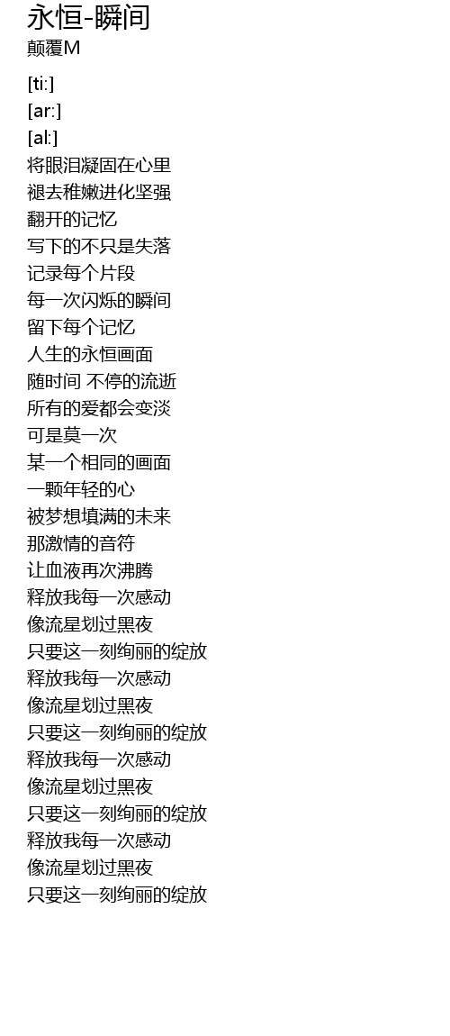 | [01:12.54] | 每一次闪烁的瞬间 |
