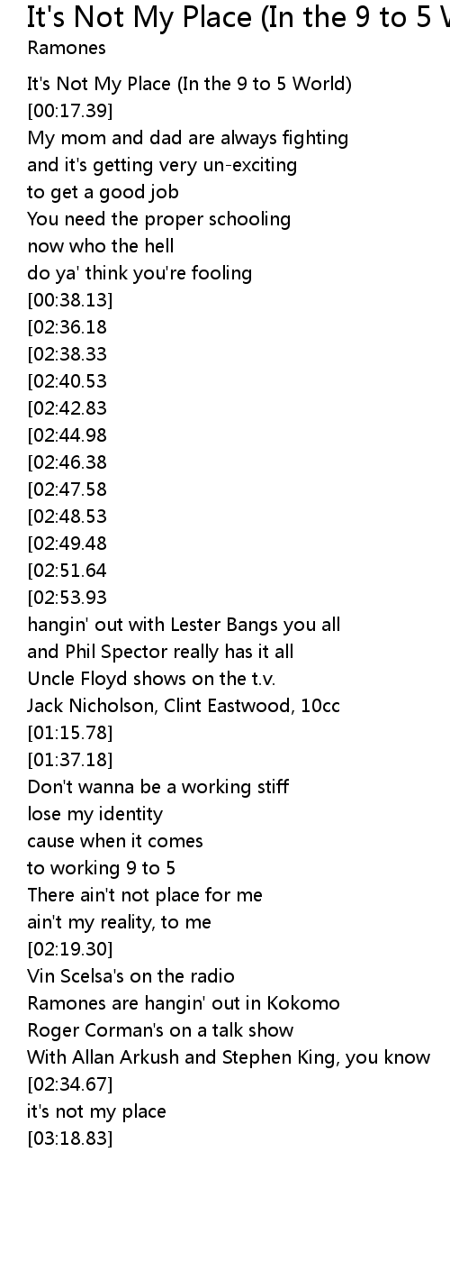 It's Not My Place (In the 9 to 5 World) Lyrics