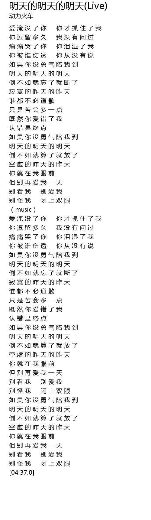 | [04:07.0] | 明 天 的 明 天 的 明 天 |
