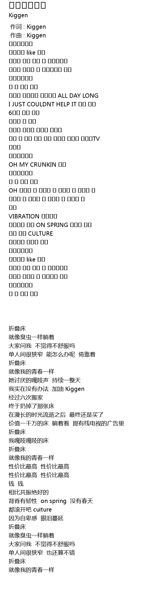 | [00:00.000] | 作词 : Kiggen |