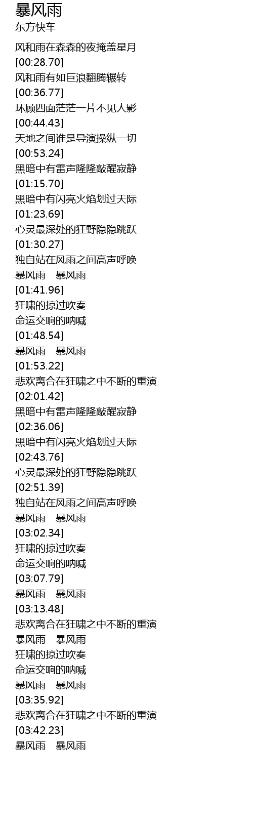 | [03:31.56] | bào fēng yǔ bào fēng yǔ |