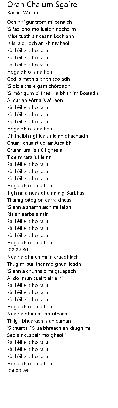 | [04:02.07] | Hogaidh ó 's na hó ì |