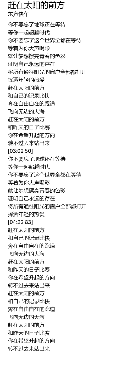 | [04:25.71] | gǎn zài tài yáng de qián fāng |