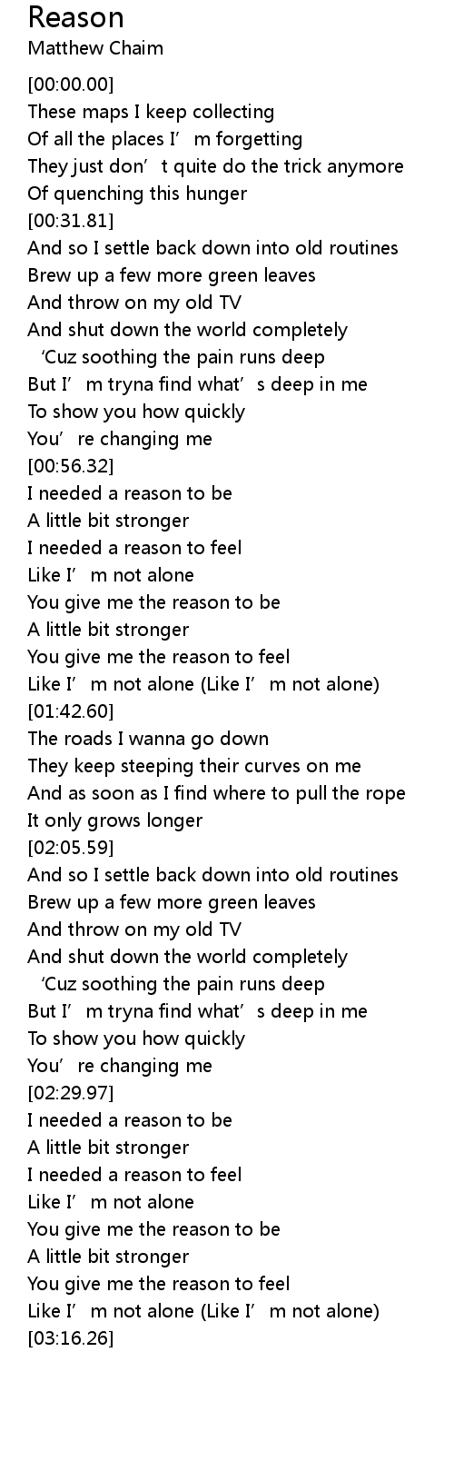 | [00:57.00] | I needed a reason to be |