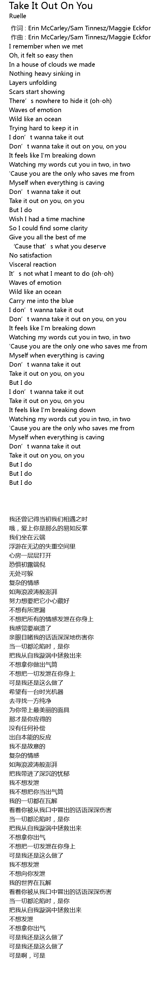 | [00:50.17] | Don' t wanna take it out on you, on you |