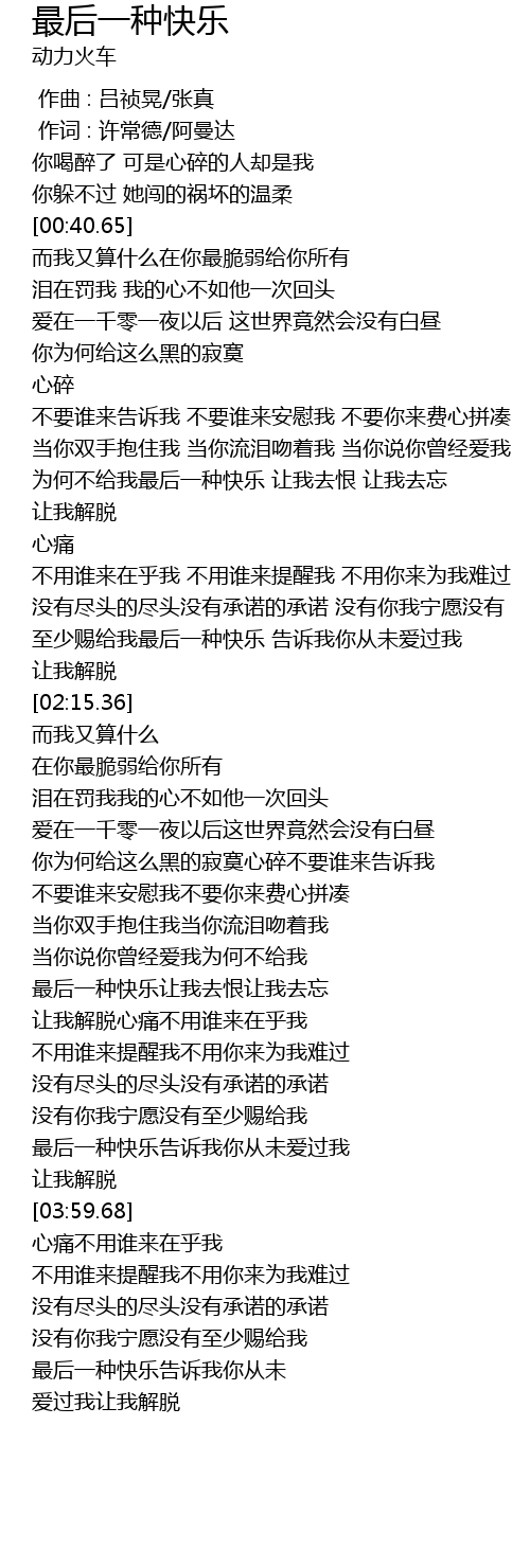 | [03:47.00] | 最后一种快乐告诉我你从未爱过我 |