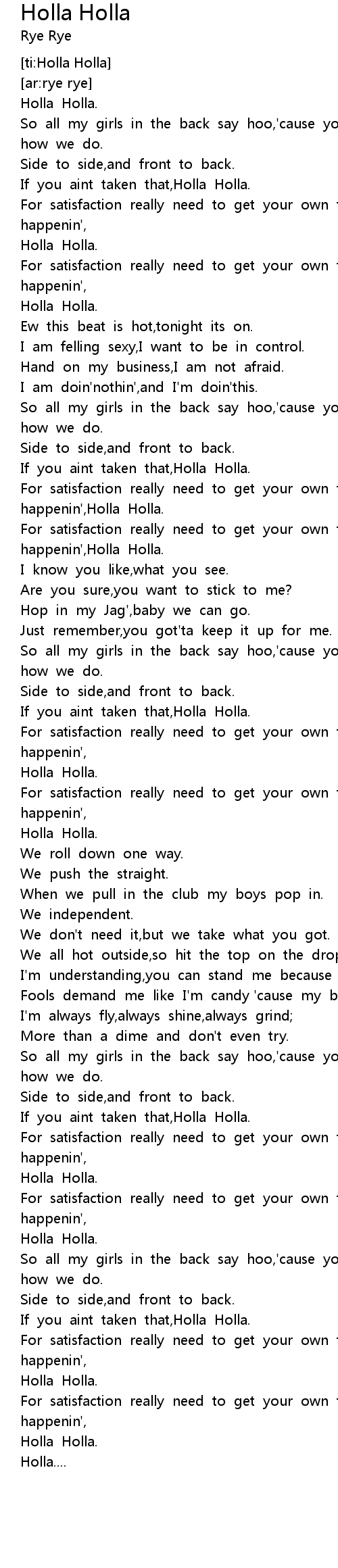 For satisfaction really need to get your own things happenin',Holla Holla. |