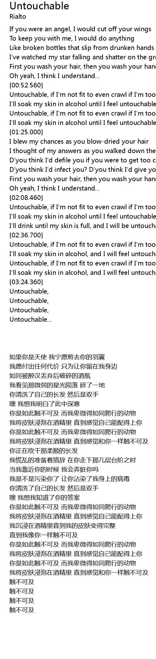 | [01:17.490] | I'll soak my skin in alcohol until I feel untouchable |