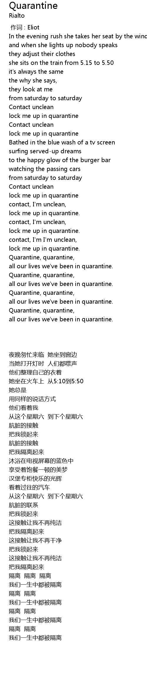 | [03:43.73] | Quarantine, quarantine, |