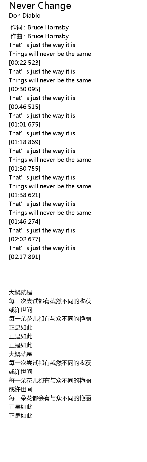 | [00:00.000] | 作词 : Bruce Hornsby |