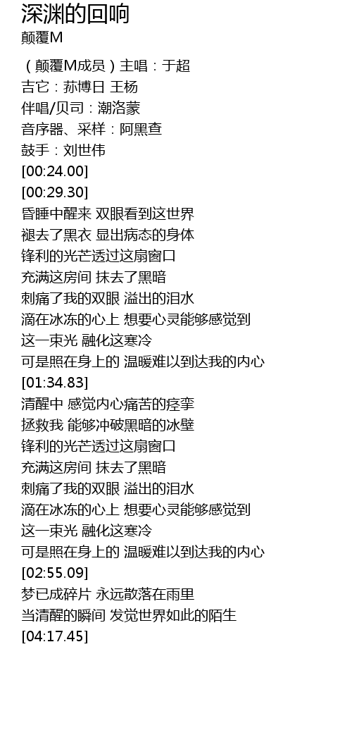 | [00:08.50] | (颠覆M成员)主唱:于超 |