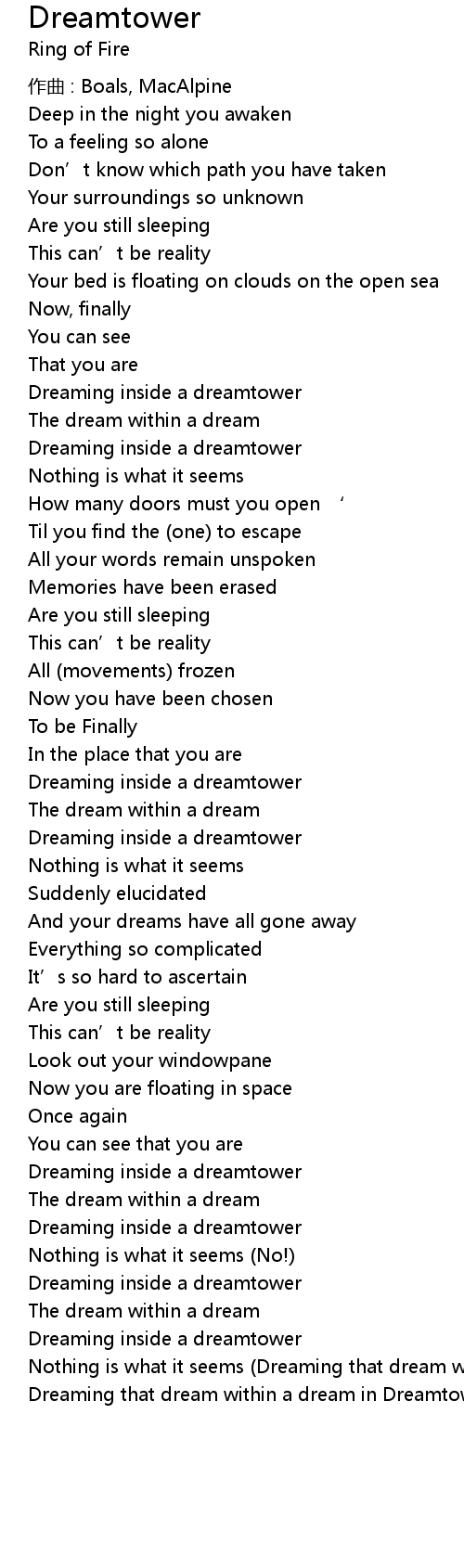 | Nothing is what it seems Dreaming that dream within a dream in Dreamtower Dreaming that dream within a dream in Dreamtower |