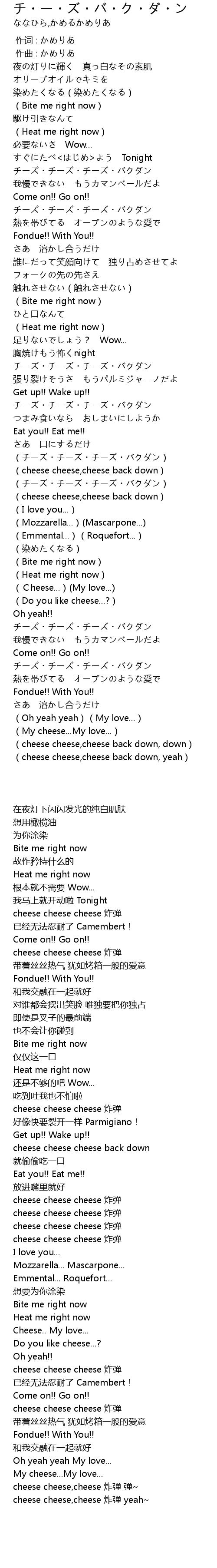 | [00:53.20] | チーズ・チーズ・チーズ・バクダン |