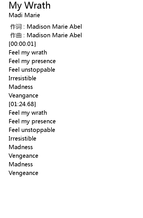 | [00:00.00] | zuo ci : Madison Marie Abel |
