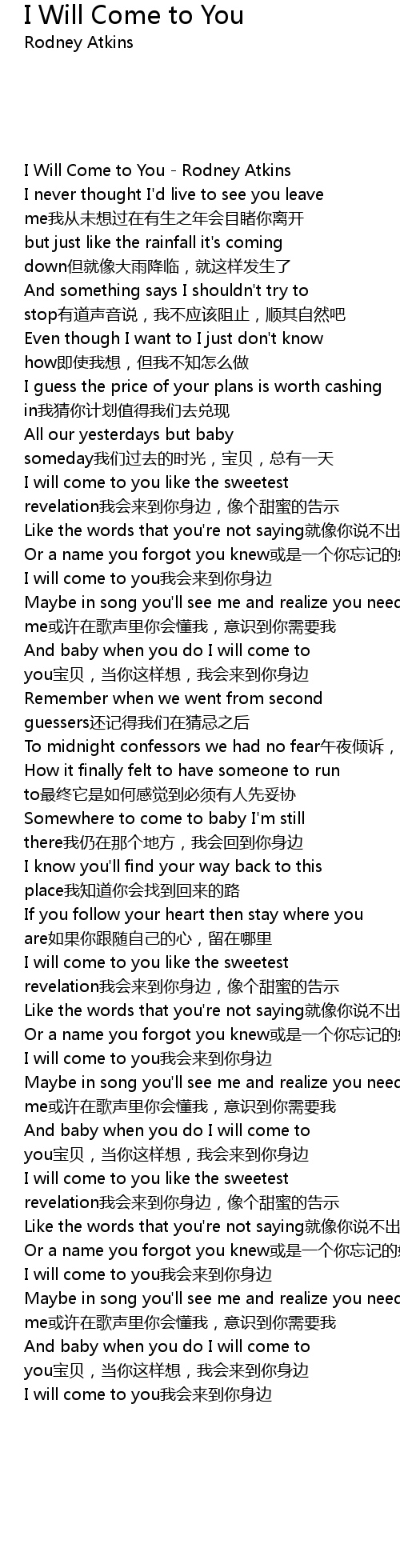 | [03:00.46] | I will come to you wo hui lai dao ni shen bian |