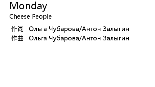 | [00:00.00-1] | 作曲 : Ольга Чубарова/Антон Залыгин |
