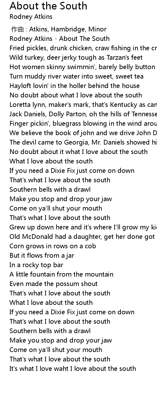 | [01:05.87] | If you need a Dixie Fix just come on down |