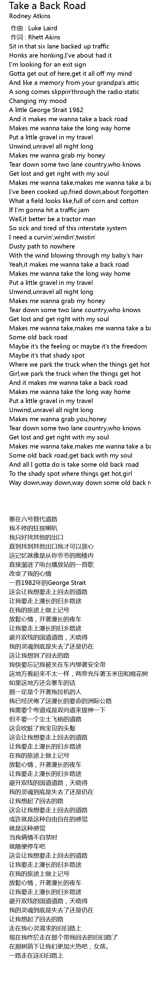 | [02:53.530] | Makes me wanna take,makes me wanna take a back road |