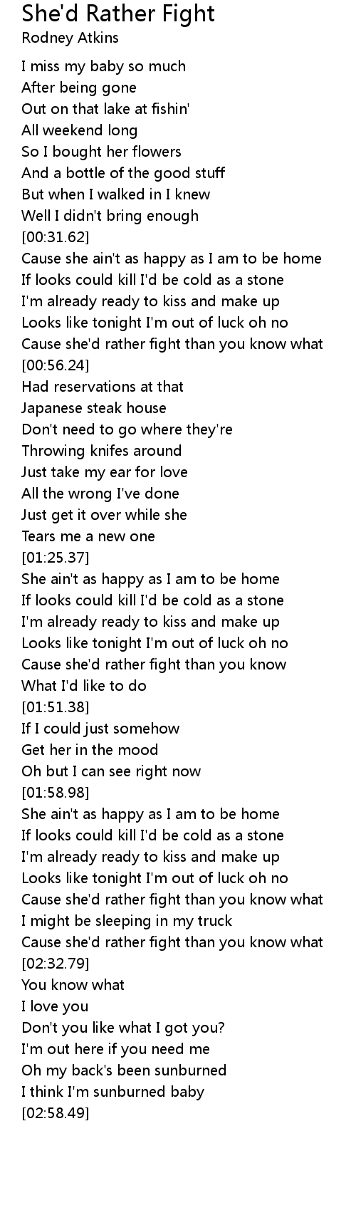 Cause she'd rather fight than you know |