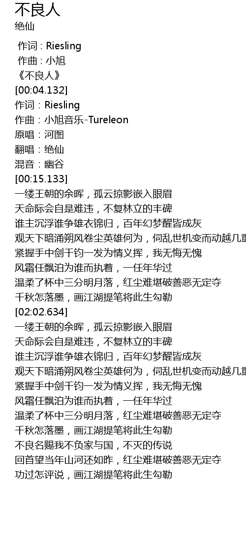 | [03:55.884] | 回首望当年山河还如昨,红尘难堪破善恶无定夺 |